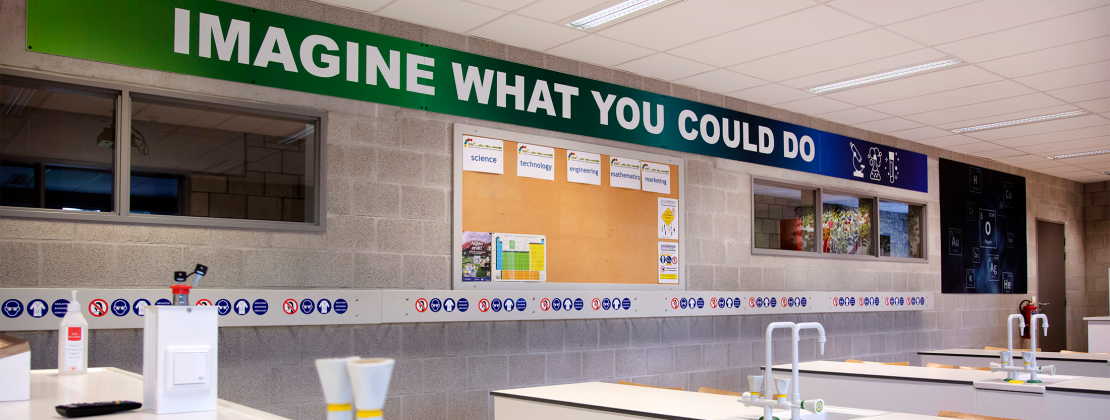 De aankleding van het nieuwe lokaal was ook voor rekening van Umicore. “Samen met ons communicatieteam in Hoboken gingen we aan de slag om daar een toffe leeromgeving van te maken”, aldus Inge Van Antwerpen. “'Imagine what you could do', prijkt nu in grote letters op de muur, kleurrijke foto's en illustraties tonen de leerlingen welke weg ze later uitkunnen als ze verder gaan met STEM. Wie weet zien we hen binnen enkele jaren wel op een van onze sites als nieuwe collega.”