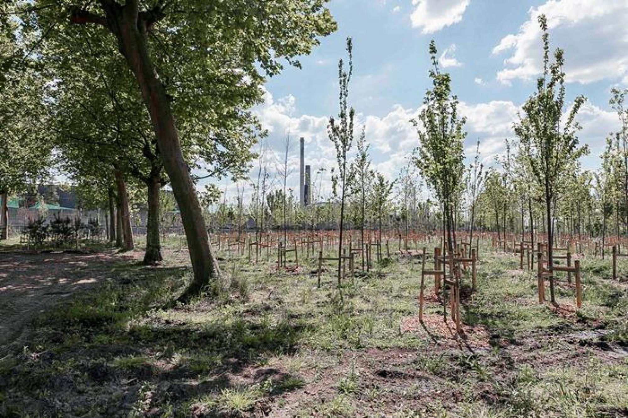 De groene zone beslaat in totaal ongeveer zes hectare. Eén hectare groen werd in het voorjaar van 2021 binnen de muren van ons fabrieksterrein aangelegd, aan de kant van de woonwijk. Aangrenzend buiten de site komt een broekbos van ongeveer vijf hectare.