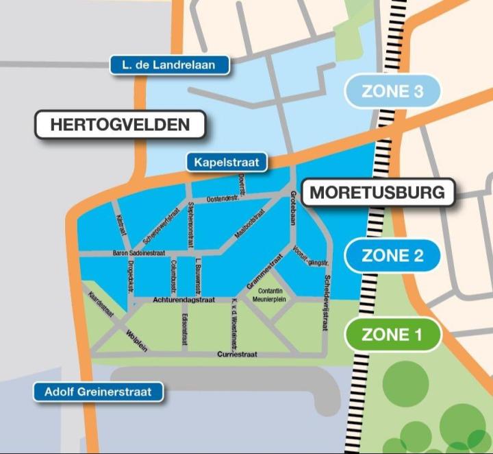 De wijken Moretusburg en een deel van Hertogvelden zijn ingedeeld in drie zones, gerelateerd aan de halfjaarlijkse lood-in-bloedmetingen en analyses door het PIH. De invloed van de site op de buurt is het grootst in de aanpalende zone 1. Het is deze zone-indeling die aan de basis lag van de gezamenlijke beslissing van Umicore en de Provincie Antwerpen om daar de groene zone aan te leggen. Run-up to the green zone.