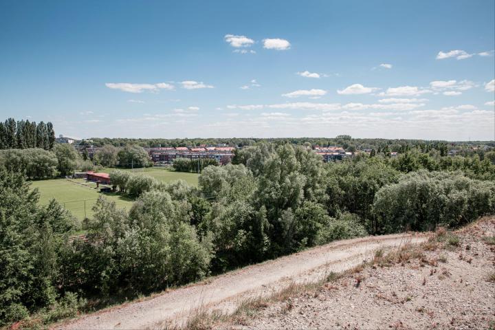 We werken aan een geluidswal van 25 meter hoog en 500 meter lang aan de oostkant van onze site: langs de spoorweg en in de richting van de achterliggende wijk Nachtegalenhof.